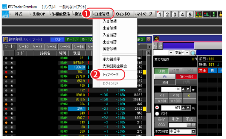 1.上段メニュー @[口座管理]−A[トップページ]の順にクリックしてください。