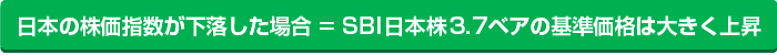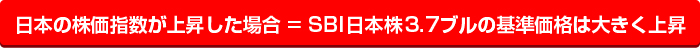 株式市場の終値が前日比で上昇したので、SBI 日本株3.7ブルの基準価額も上昇(SBI 日本株3.7ベアの