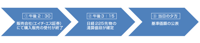 大阪取引所が発表する清算値段をもとに、当日の夕方に本ファンドの基準価額を算出しています。(2016年9月末現在)